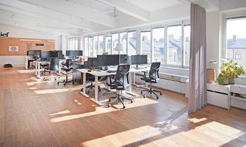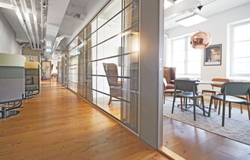 Öppen planlösning med flertalet mötes och konferensrum.